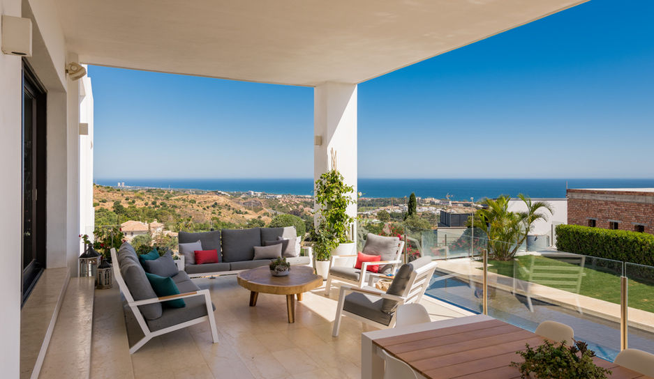 Experience privacy and serenity in this spectacular modern villa for sale in Marbella with panoramic sea views, situated on one of the most desirable urbanizations in the area.