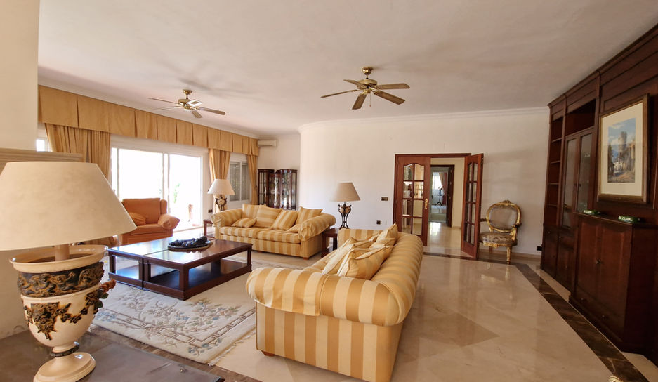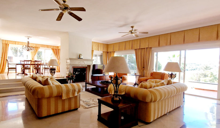 Two minutes away from El Paraiso Golf Club, you will find this magnificent villa built on 3 levels, with panoramic views to the west (wonderful for the afternoon sun!) while enjoying golf and partial sea views. A private driveway takes you to a large indoor parking or to a courtyard with room to park several cars.